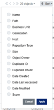If a Duplicate Count filter value of Has duplicates is applied, the review will automatically sort by Duplicate ID values in order to group batches of duplicates together. This sorting will not occur if a sort order has already been applied.